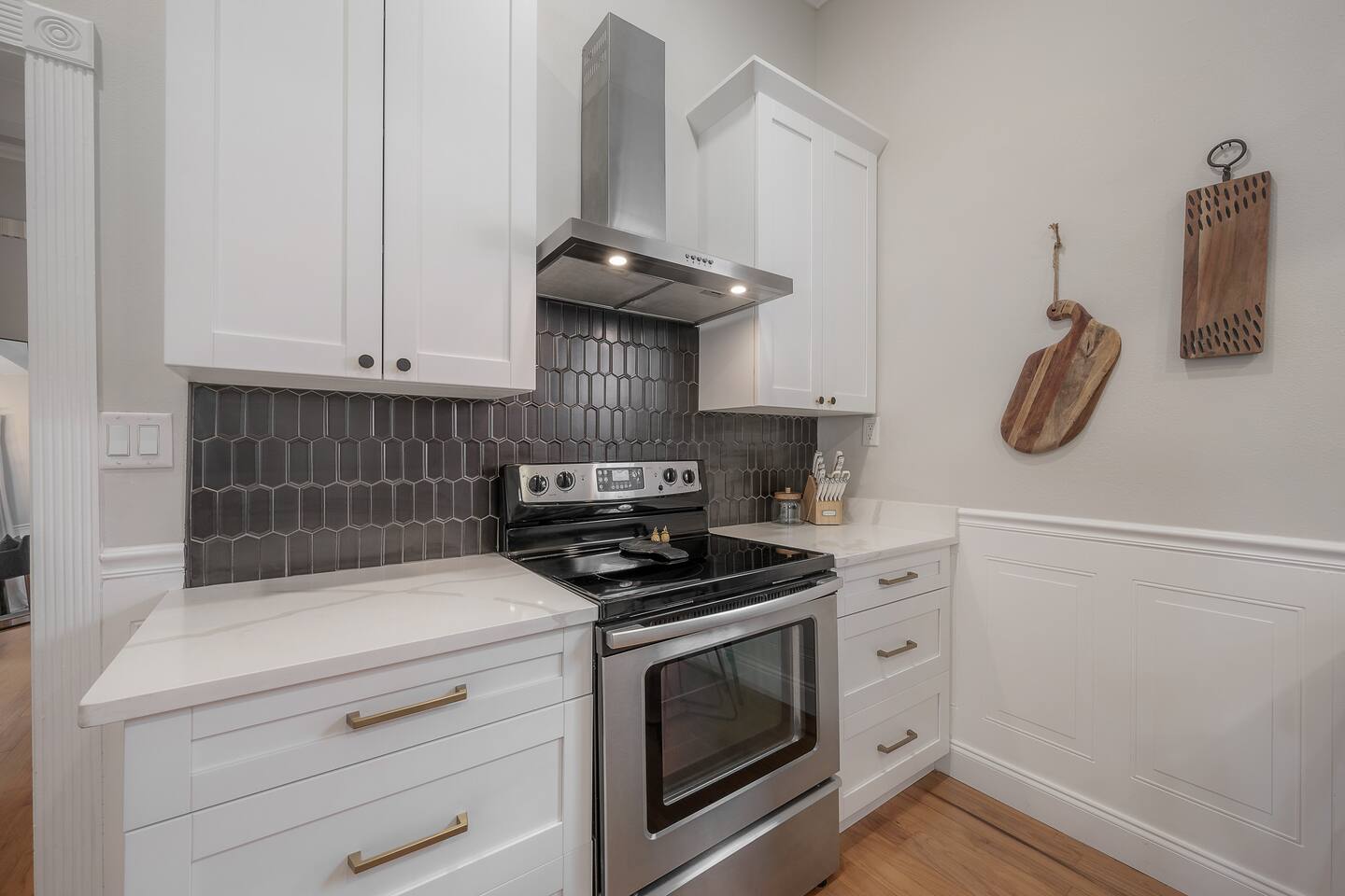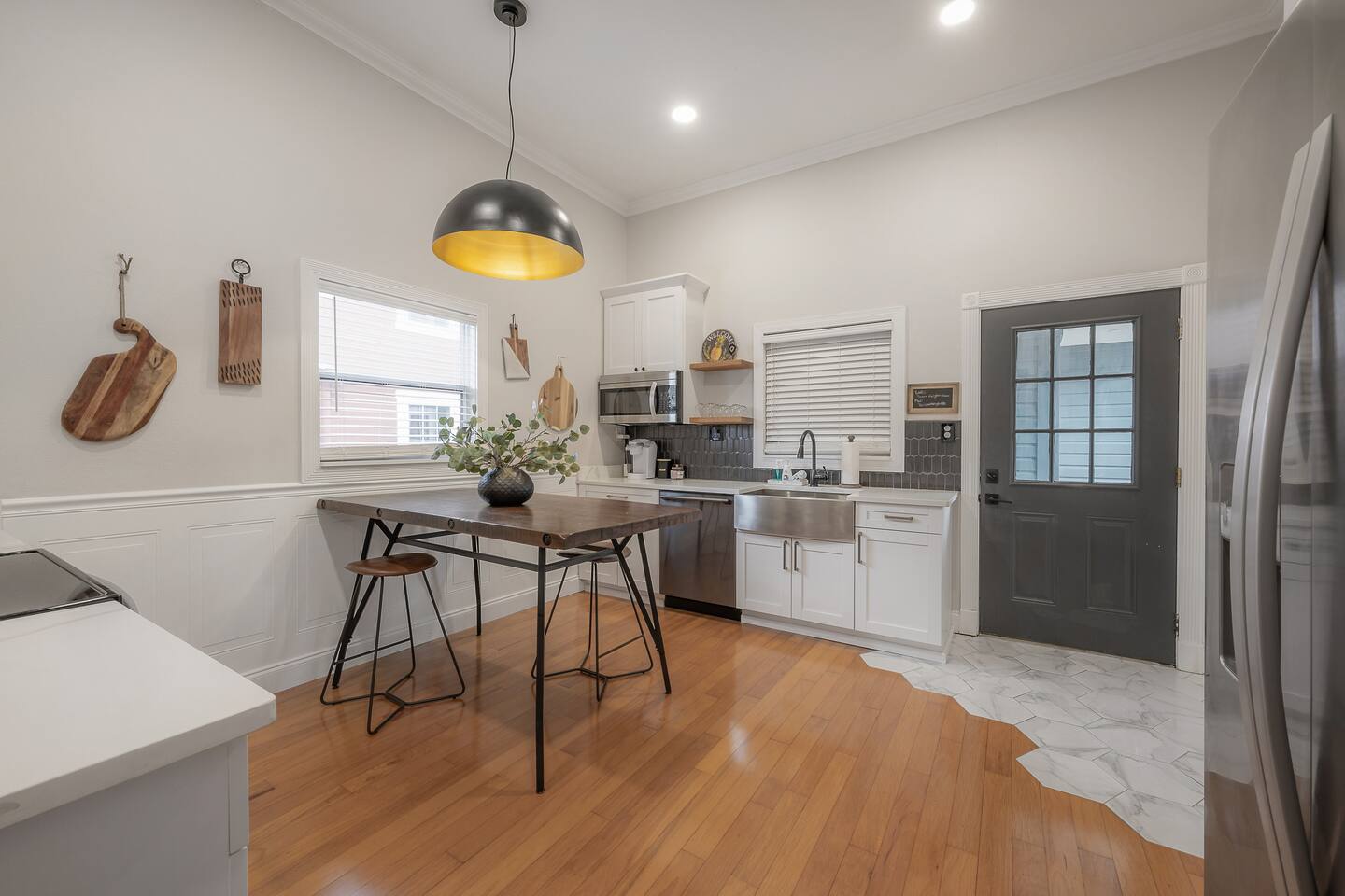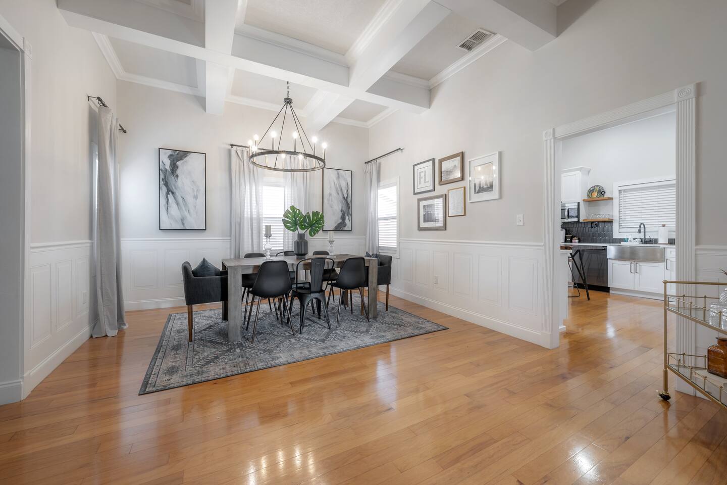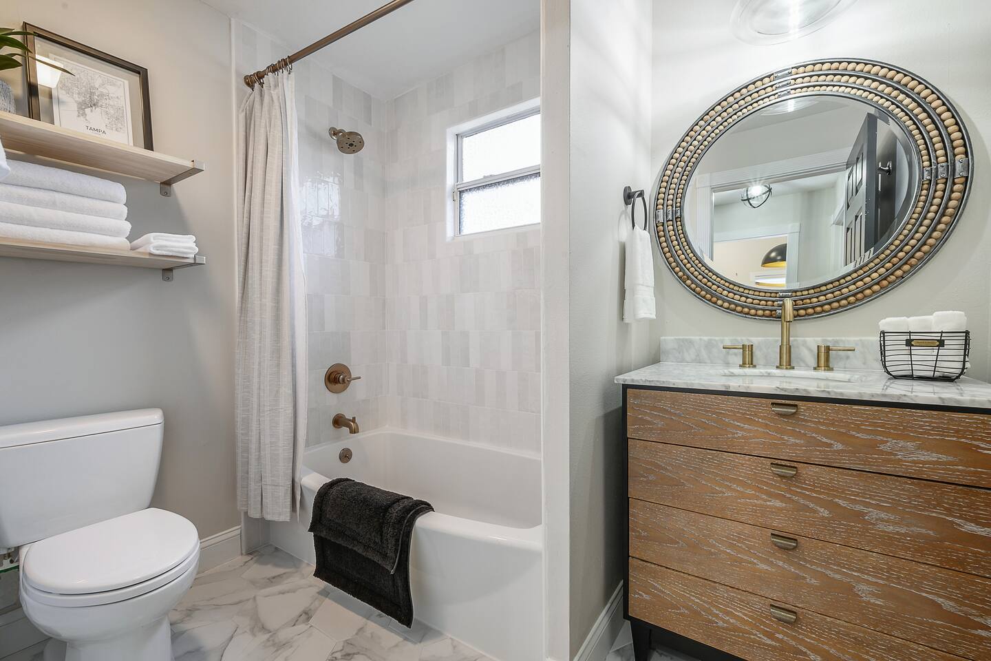 Prime location: Walk to Tampa’s Riverwalk & Armature Works. Close to downtown, convention center, and The University of Tampa. This two bedroom stunner is both spacious with soaring 11ft ceilings yet still cozy. Professionally designed & freshly renovated with your comfort in mind. Fully equipped kitchen with everything you need to create a home cooked meal. Enjoy outdoor dining on the brand new back deck or people watch while relaxing on the front porch Adirondack chairs.
