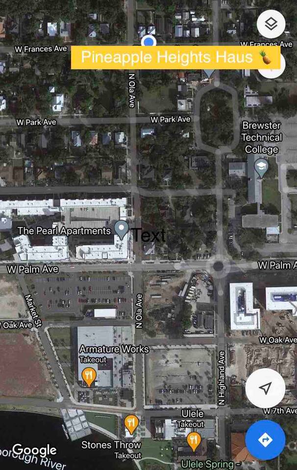 Our professionally designed interior decor artfully blends historic charm with modern comforts. Pineapple Heights Haus has undergone a complete revival, offering a cozy bungalow style duet with spacious interiors. The well-appointed kitchen and expansive dining room with plenty of seating, create the perfect setting for shared meals and memorable gatherings. Relax in the inviting living room, featuring a Roku TV with basic cable and high-speed wireless internet. The primary bedroom offers a comfortable queen bed, a wall-hung Roku TV, and a convenient desk setup. In the second bedroom, you'll find a cozy queen sized bed, ensuring a restful night's sleep. Retreat to the fully remodeled bathroom, adorned with stunning designer tiles from Spain, a gorgeous vanity, plus Toto toilet, where you can indulge in relaxing self care. For your convenience, a full-sized washer and dryer are available for your use. Free parking is available on street with ample space for two cars. In a world where location is everything, Pineapple Heights is a superstar! Prime location just four blocks away from The Tampa Riverwalk (a nice stroll with no major roads to cross) & close to downtown Tampa. Walk to Tampa's top attractions, including the renowned Armature Works, Ulele, Michelin star Rocca and Kosen. Plus lots of local must try breweries. Walk to: Armature Works: 5 minutes/.3mi The Riverwalk: 6 minutes/.3mi Ulele: 6 minutes/.4 mi Sweetgreen 4 min/ .2mi Woven waters brewery 5 minute /.2mi Hidden Springs Brewery: 12 minutes/.6mi Straz Center of Performing Arts: 19 minute stroll along Riverwalk/1 mile Curtis Hixon Park: 25 minute stroll along Riverwalk/1.4 miles Julian B. Lane Park: 20 minute stroll along Riverwalk/1 mi Drive: Tampa International Airport (TIA): 12 minutes/4.2 mi Raymond James Stadium: 9 minutes/3.1 mi Ybor City: 6 minutes /1.6 mi Amalie Arena: 9 minutes/2 mi Benchmark International Arena: 8 minutes/2 mi Lowery Park Zoo: 11minutes/4 mi Florida Aquarium: 9 minutes/2.6 mi Downtown Tampa: 5 minutes/1.8 mi Convention Center: 7 minutes/1.9 mi Busch Gardens: 16 minutes/8.3 mi Hyde Park Village: 10 minutes/2.7 mi The University of Tampa: 7 minutes/1.8 mi As you explore Tampa Heights' dynamic Riverwalk section, you'll find effortless access to downtown and Water Street, where more dining and entertainment options await – don't miss the vibrant atmosphere of Sparkman Wharf. At Pineapple Heights Haus, we embody a meaningful philosophy behind our name. Pineapples symbolize wealth and southern hospitality, offering a warm welcome to all our guests. 'Heights' represents our vibrant location in the ever-evolving Tampa Heights neighborhood, where we've proudly resided for a decade. As a German-American duo, our 'Haus' holds a special place for family and visitors alike, creating cherished memories for all. Come experience the allure of Tampa Heights and indulge in unmatched hospitality at Pineapple Heights Haus. Whether you're a local looking for a staycation or a traveler seeking a home away from home, book your stay now!